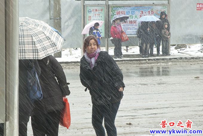 一位母親在雪天急等待放學(xué)的孩子,時間到了,仍沒有見到孩子的影.