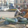 使用毛驢車運(yùn)送側(cè)柏樹苗