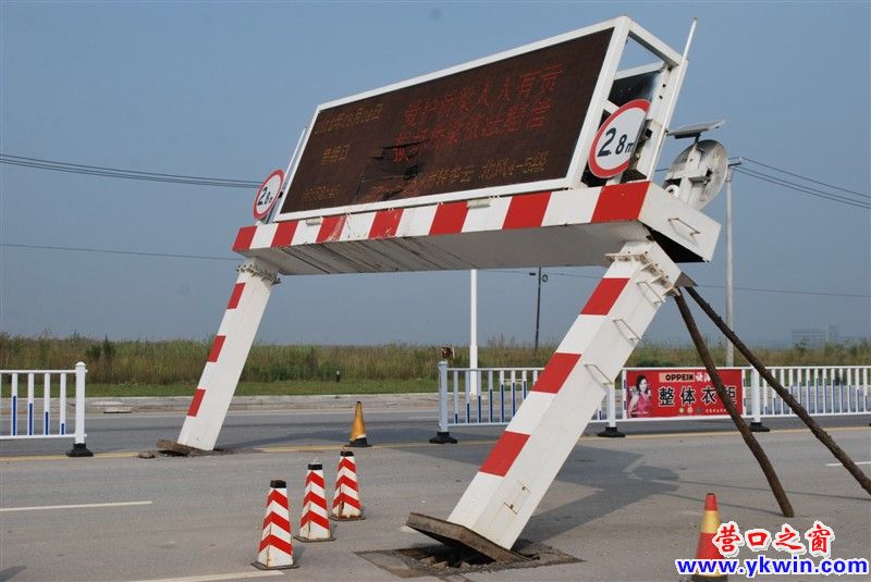 2012年9月8日晚,位于遼河大橋營口路段的限高LED標(biāo)桿被撞,筆者9日早前去拍照時候見到了路政管理人員,想進(jìn)一步了解情況未果。據(jù)8日晚的一位在此路過的出租車司機(jī)說,當(dāng)晚9點(diǎn)半他在此路過就看到限高桿已經(jīng)被毀,說是被已超限車輛誤撞。截稿為止還沒有得到明確結(jié)果,在此提醒過往車輛注意安全小心駕駛,提醒司機(jī)朋友們一定把交通安全記在心中,千萬不可麻痹大意。