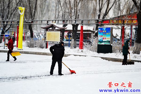 在這個寒冷的冬季,濱城營口又迎來了一場降雪,市環(huán)衛(wèi)部門派遣大量除雪隊伍加入到城市的除雪進(jìn)程中,筆者來到營口市西市區(qū)楞嚴(yán)寺公園,看看雪后這里的情況,一早還沒等公園環(huán)衛(wèi)人員上班,就已經(jīng)看到一位市民阿姨從自己帶來鐵鍬來此自愿除雪“公園是公共場所,為大家提供一個休閑娛樂的空間,我有義務(wù)來這里除雪”阿姨說,這位阿姨的行為十分令人感動,這不就是和諧社會的真實寫照嗎,今天公園里的保潔人員來的也是特別的早,大家都是為了來園游玩的人們能有一個潔凈安全的環(huán)境而努力工作著,幾位老者路過正在清掃的公園管理員旁邊豎起大拇指說“咱人民公園的管理員真棒!”臨近筆者采訪結(jié)束的時候,公園內(nèi)多人已經(jīng)開展了大面積除雪工作,根據(jù)筆者與園內(nèi)管理人員的交流,園內(nèi)積雪將會在第一時間清除,為廣大游客提供一個優(yōu)越的入園環(huán)境。