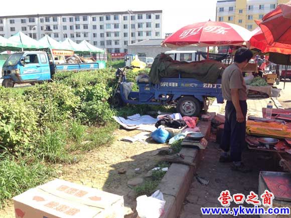 昨日,筆者在營口市老邊區(qū)百匯市場南門附近的道路上發(fā)現(xiàn),有許多菜農(nóng)在路邊草坪旁擺攤,銷售蔬菜水果。但是,菜農(nóng)們將自己承載蔬菜水果的車輛放在了綠色草坪上。還有的菜農(nóng)將裝水果的箱子放在了草坪上擺放,菜農(nóng)們的做法相當(dāng)不妥當(dāng),極其影響草坪內(nèi)的草木生長!