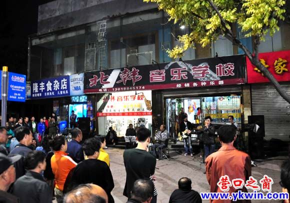 28日晚,一首首優(yōu)美的歌聲劃破靜謐的夜空,數(shù)百名群眾聚集在人民公園西門對(duì)面的“北韓音樂學(xué)校