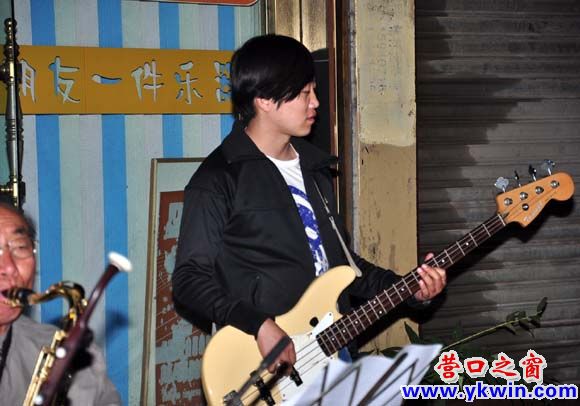 這個(gè)吉他手是樂隊(duì)中唯一的年輕人。