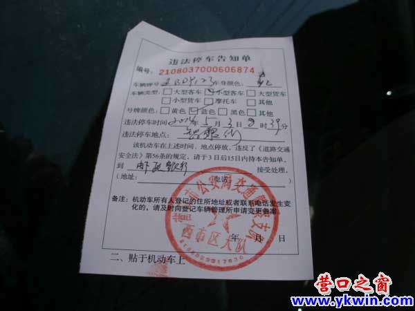 5月3日上午,3輛轎車在營(yíng)口智權(quán)街營(yíng)口市委黨校附近違停分獲《違法停車告知單》。這3輛車都違反《道路交通安全法》第56條。被規(guī)定3日后,15日內(nèi)持本告知單到郵政(儲(chǔ)蓄)銀行接受處理。