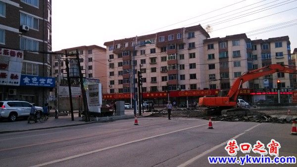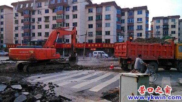 建設(shè)路與學(xué)府路交叉路口,挖掘機(jī)正在路面作業(yè)。