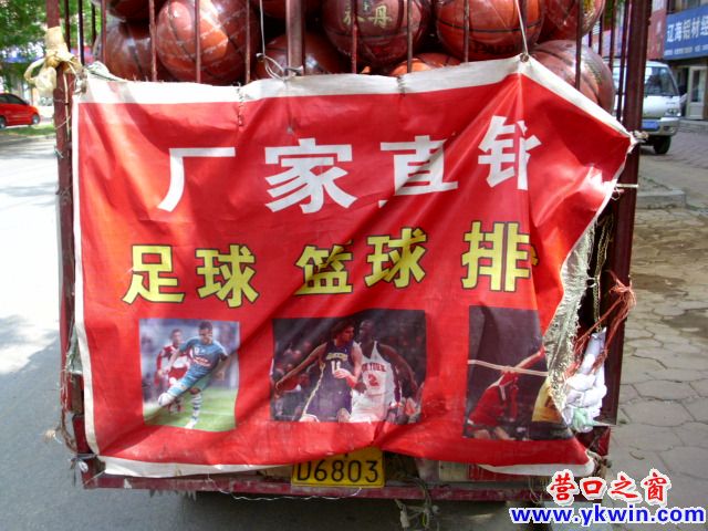 6月28日下午,一輛牌照為豫FD6803的河南三輪摩托車滿載足球、籃球和排球來到營口大潤發(fā)超市附近,打著“廠家直銷足球籃球排球”的廣告銷售車上的三種球,每個球僅賣四五十元。此刻賣球或許能沾點“世界杯"的光。