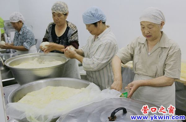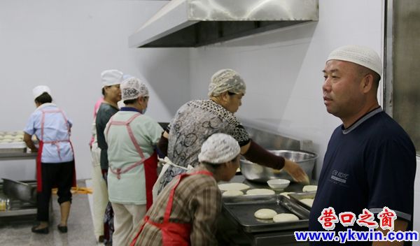 營口清真東寺主任滿紅奇(右一)組織鄉(xiāng)老們?yōu)閼c祝開齋節(jié)準(zhǔn)備食品