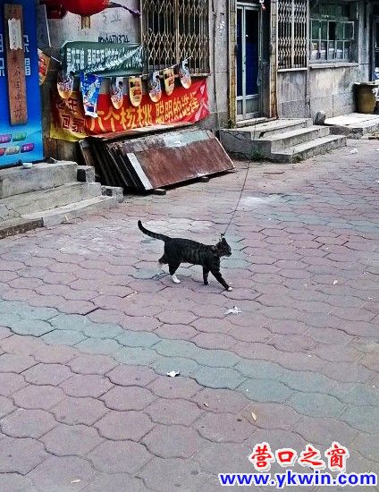 楞嚴(yán)寺公園東門(mén)附近有家超市門(mén)前,用鐵鏈拴著一只大貓,鐵鏈上方套在晾衣繩上,這只貓?jiān)诠潭ǖ姆秶鷥?nèi)可以來(lái)回走動(dòng),像極了在巡邏的樣子。拴狗的正常,拴貓的極少看見(jiàn),也許是時(shí)間長(zhǎng)了,這只貓也只好任勞任怨的擔(dān)當(dāng)起巡視任務(wù)來(lái)。