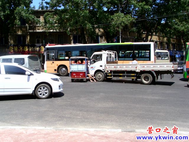8月2日中午,一輛貨車與一輛摩的在營(yíng)口公園路和建設(shè)街十字路口相撞,造成貨車前保險(xiǎn)杠脫落、摩的前窗玻璃破碎。兩車零距離停在路中央等待交警給交通帶來(lái)了不暢。這個(gè)路口車輛很多卻沒(méi)有紅綠燈。