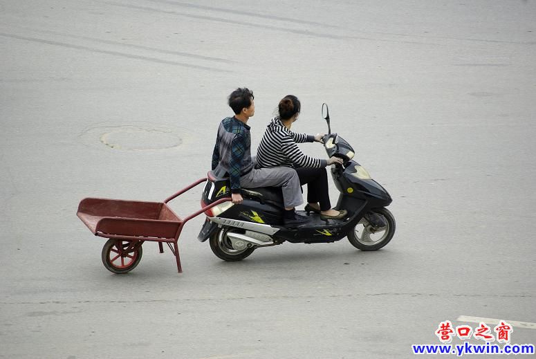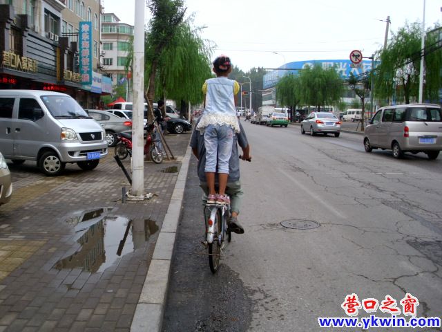 一中年男人騎著自行車載著一個(gè)站著的女孩自南向北行駛在營(yíng)口公園路上。其間,男人把車騎到路邊與等活零工交談了幾句后拐入新興大街,這個(gè)女孩由始至終都站在他車的后座上。