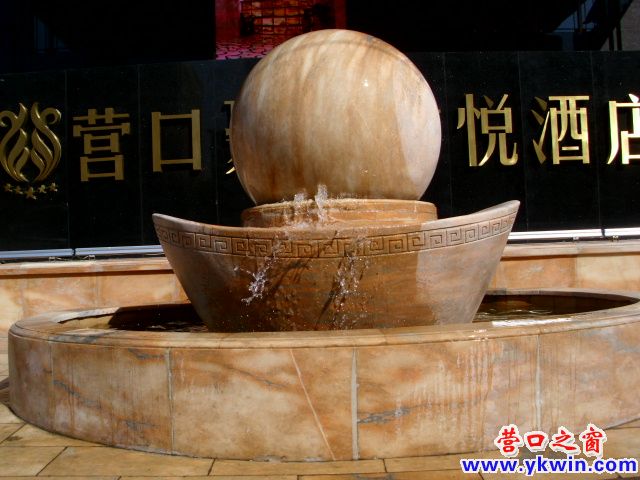 營口一家酒店的門前擺放了一個(gè)元寶,元寶里面有涌泉,涌泉托起了一個(gè)不停轉(zhuǎn)動(dòng)的石球,而這個(gè)石球極像太陽系最大的行星——木星。9月25日,我來到它的旁邊,見到它始終從外往里轉(zhuǎn)。不難想象,該酒店的用意很可能就是”財(cái)源滾滾來“吧!