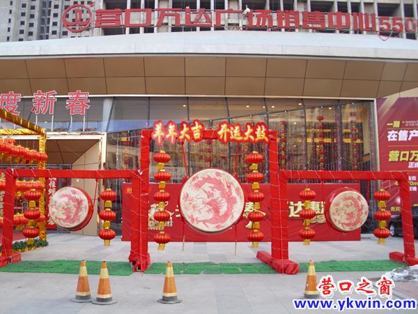 時至2月14日(臘月廿六),年味已經很濃了,許多商業(yè)網點前早已張燈結彩(圖三)了??墒菭I口新興大街和公園路十字路口的一家藥房樓頂的戶外廣告牌的“臉皮”卻被風給刮跑了(圖一、圖二),給人以獻丑的感覺。還有幾天就過年了,請抓緊時間換個“新臉皮”的吧!