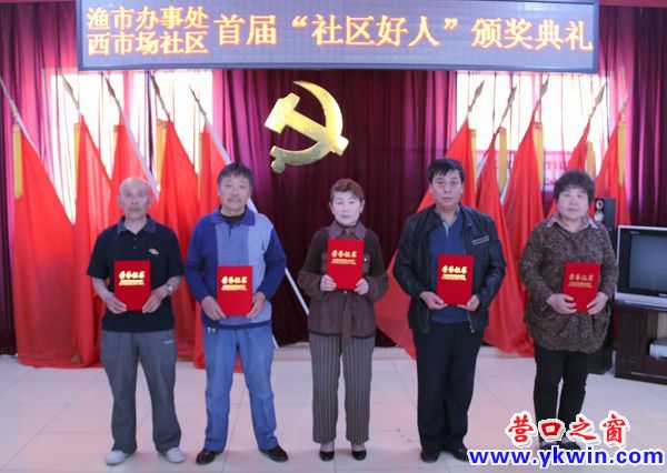 今天,營口市西市區(qū)漁市街道辦事處西市場社區(qū)舉辦首屆社區(qū)好人頒獎典禮大會。