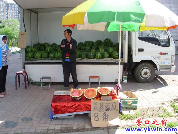 6月12日,營口公園路邊一對瓜農(nóng)正在出售大棚西瓜,盡管價格降到0 8元一斤還是沒人購買,這倒不是他們的西瓜不好,而是因為天氣不熱。