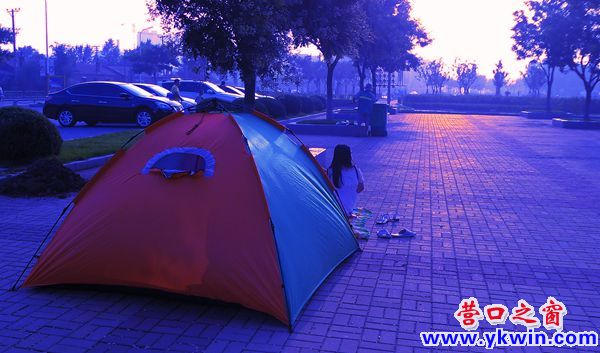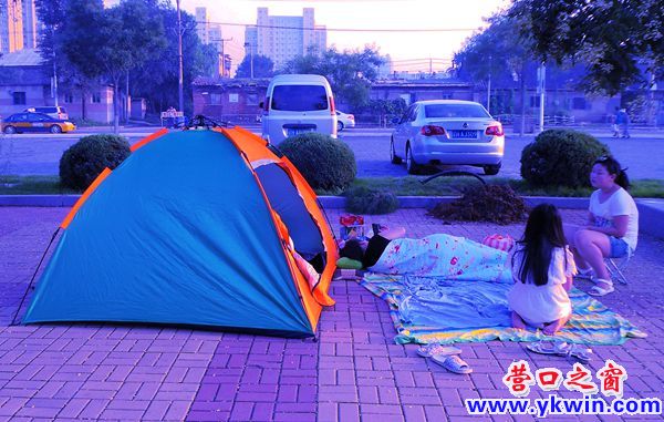 8月4日傍晚,筆者在營口市平安廣場看到,有人在廣場邊搭建帳篷。一了解才知道,原來是一家人害怕中午的地震,準備在廣場過夜了。