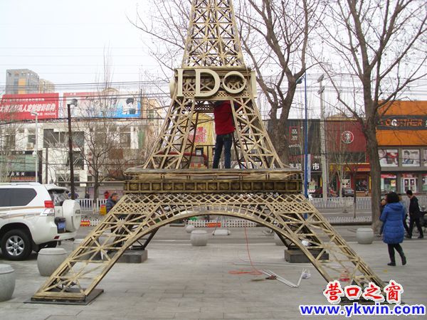 12月25日,一座小埃菲爾鐵塔在一家大廈廣場亮相。下午工作人員正在塔上安裝照明設(shè)備,從此,營口人在營口就可領(lǐng)略法國埃菲爾鐵塔的“雄姿”了。
