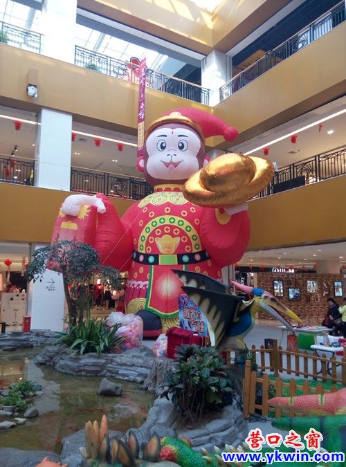 在營(yíng)口某商場(chǎng)大廈的這個(gè)財(cái)神爺一手拿著個(gè)大元寶可以看出是財(cái)神,但頭上又戴著圣誕帽,臉又是猴臉。把財(cái)神爺?shù)哪槗Q成猴臉可以解釋成為了迎合2016猴年,可又戴著圣誕帽是為了中西結(jié)合嗎?2015圣誕節(jié)早已過(guò)去,還是為了提前讓財(cái)神爺過(guò)圣誕節(jié),這位財(cái)神爺身上的各種元素設(shè)計(jì)含義只有商家知道是什么了。