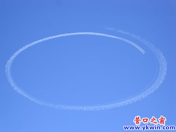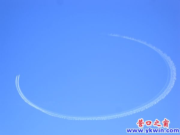 正月初九9點(diǎn)多鐘,兩架飛機(jī)在營(yíng)口南湖陽光新城上空畫出了一個(gè)大大的漂亮圓圈,這似乎給營(yíng)口千家萬戶的春節(jié)大團(tuán)圓畫上了一個(gè)圓滿的句號(hào)。另外,這個(gè)句號(hào)還在告訴營(yíng)口的勞動(dòng)者們,春節(jié)已經(jīng)過去,應(yīng)該趕快進(jìn)入工作狀態(tài),為奪取猴年的更大豐收而勤奮努力奮斗。