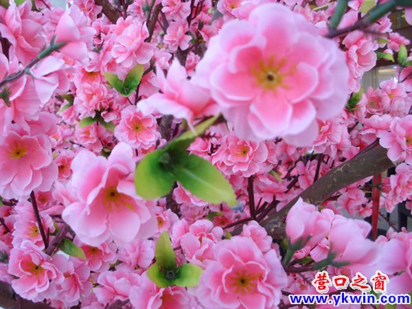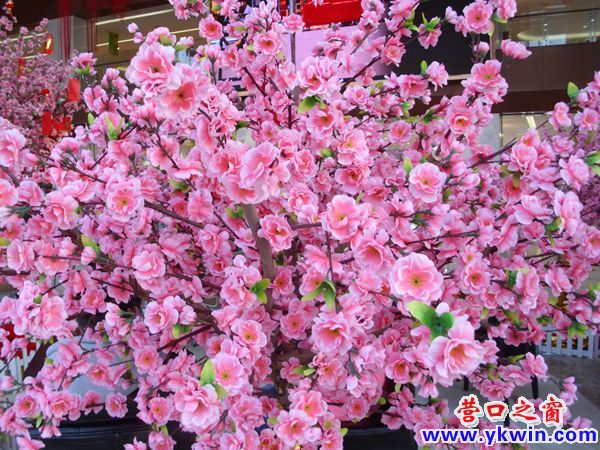 一片正在開花的桃園生長在營口一家超市的大廳里,令人賞心悅目。使“桃園蕩漾著孩子們的笑聲,桃花映紅了姑娘的臉龐”的情景得以再現(xiàn)。