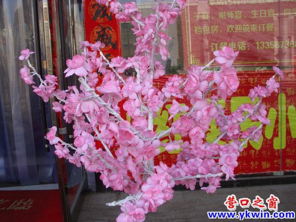 3月2日,營口乍暖還寒,冬眠的花草樹木絲毫沒有綻放的跡象。在商賈云集的營口盼盼路邊只有一個小吃部門前擺放的兩顆綠“樹”和兩顆粉“樹"給人們帶來了春天的氣息。想用餐的顧客見到這生機勃勃的景象無疑會被深深的吸引。