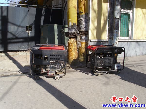 營口站前區(qū)部分區(qū)域停電,東新路邊的一家小醫(yī)院為了正常為患者診療搬出來五臺發(fā)電機同時開動發(fā)電為自己供電,看來他們是早有準(zhǔn)備。