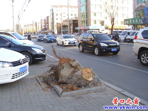 營口公園路東福園市場對面一棵倒伏的大樹被相關(guān)部門鋸掉拉走已有多日,可所遺留下的樹根卻沒人管了。