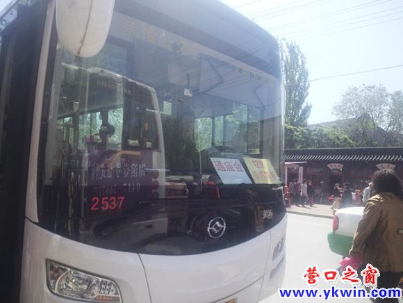 通往楞嚴(yán)寺廟會(huì)的公交車上擺放了“通廟會(huì)”的字牌