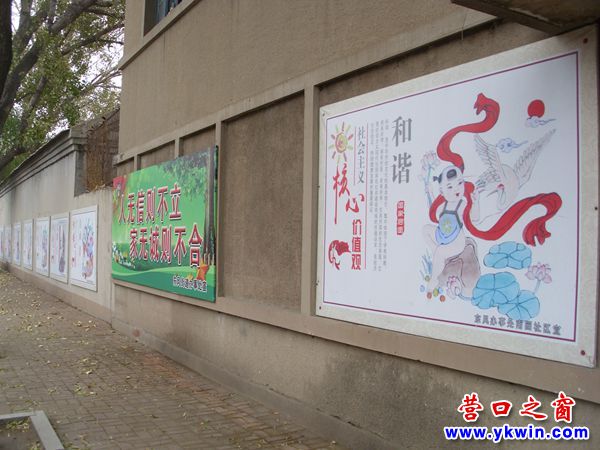 經(jīng)過(guò)營(yíng)口二紡廠門(mén)前見(jiàn)到院墻上鑲嵌的24字社會(huì)主義核心價(jià)值觀字畫(huà)的順序嚴(yán)重錯(cuò)亂。