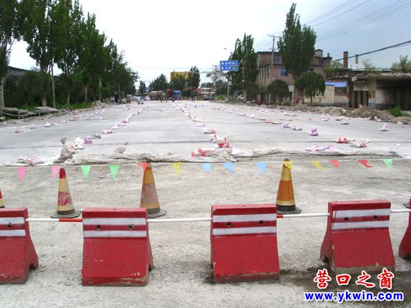 7月27日,來到營口市立交橋頂層中央見到一塊路牌,上面寫到:沈營線道口封閉,去往水源(、)盤錦方向(的)車輛請繞行。再往北行又幾次出現(xiàn)“前方施工”的牌子。