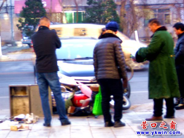 12月5日8點(diǎn)多鐘,在營(yíng)口市太和北街煙草專賣(mài)局西幾百米的路段,一輛黑色轎車(chē)把一輛載著工具箱的紅摩托車(chē)撞上了人行道翻倒工具散落一地,幸好兩名駕駛員有驚無(wú)險(xiǎn)。