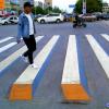 多余的花壇“歡迎歡送”往返斑馬線的行人
