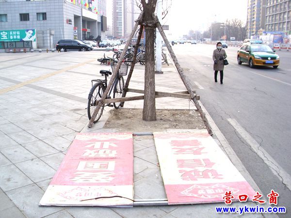 截至2月28日,懸掛在營(yíng)口市渤海大街邊萬(wàn)達(dá)廣場(chǎng)6號(hào)門(mén)處的社會(huì)主義核心價(jià)值觀宣傳牌“愛(ài)國(guó)敬業(yè)、誠(chéng)信友善”自去年秋天從高處墜落已在地上躺好幾個(gè)月了,可就是沒(méi)人管。