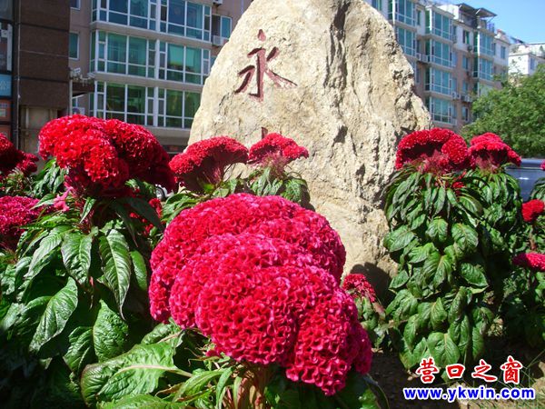 營口市渤海明珠小區(qū)西大門盛開雞冠花