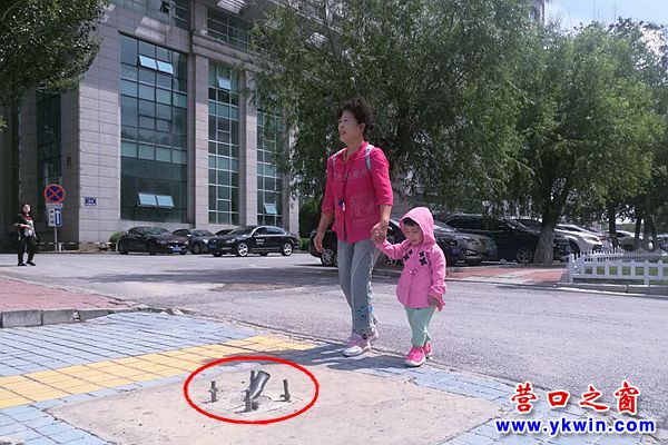 營口市渤海大街工信局路口人行道上的路燈燈桿被拆除后,4個(gè)地腳栓外露,行人走到這里一不留神就會(huì)被這“絆腳釘”暗算,非常危險(xiǎn),希望施工方盡快處理。