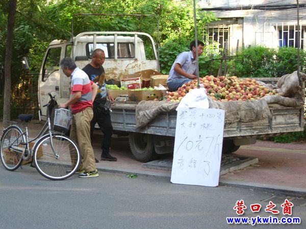 8月27日,走在營口市區(qū)的大街小巷到處可見鮮艷的桃紅、隨時能聞?chuàng)浔堑奶蚁?,再看鮮桃的售價也夠親民的:一元能買六七斤,營口今年的鮮桃真是貨源充足,物美價廉,市民滿意。