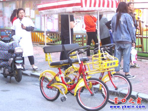9月18日16時(shí)許,營口市一職專實(shí)驗(yàn)幼兒園即將放學(xué)。這時(shí)一位家長“開”著一輛難得一見的四輪車前來接孩子。只見這輛四輪車有兩個(gè)方向盤、兩個(gè)座位和兩對腳蹬,是由兩輛單車連到一起而成。