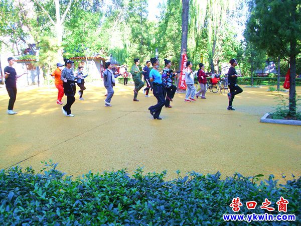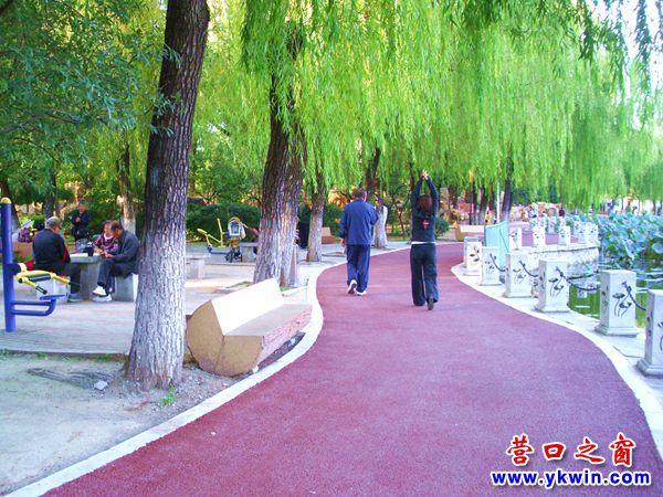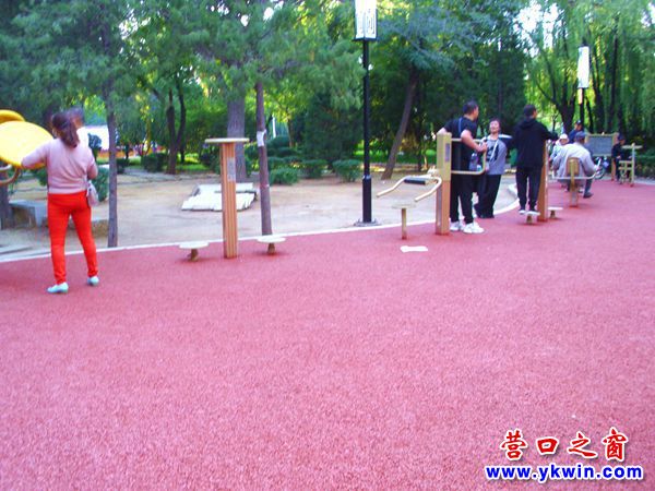 9月23日和24日,來到維修中的營口楞嚴寺公園,見到兩紅兩黃4個嶄新的廣場和幾段紅色小馬路時頓覺眼前一亮。在這上面跳舞、健身和漫步的市民很可能也是美滋滋的吧!