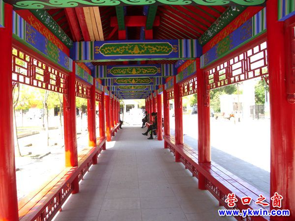9月26日,來(lái)到營(yíng)口人民公園西門(mén)廣場(chǎng),見(jiàn)到今年新建的仿古長(zhǎng)亭已經(jīng)基本完成,有幾個(gè)游人捷足先登正坐在里面乘涼呢。