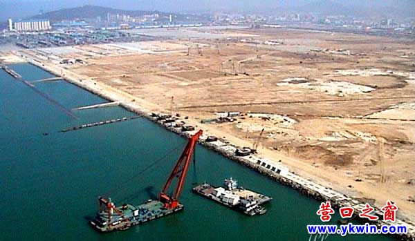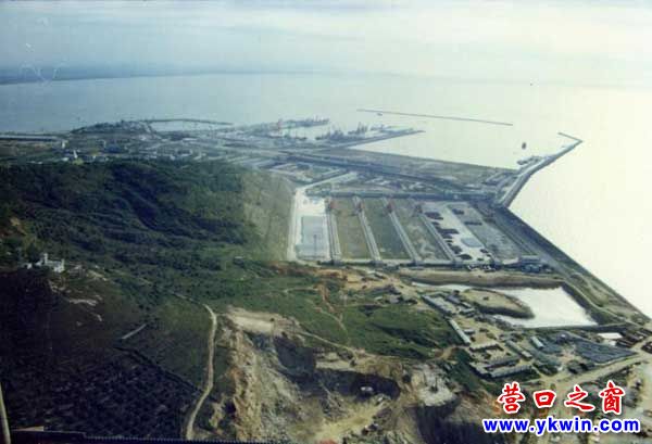 2、1992年9月建設中的鲅魚圈港區(qū) 拍于華能電廠240米高煙筒將完工之時