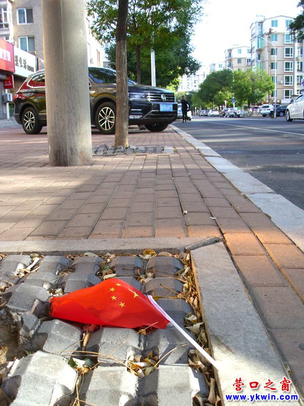 10月9日,在營口市育才初級中學附近,有一面小國旗被丟在路邊樹下,看上去心里很不是滋味。因為國旗是國家的象征,應(yīng)該受到尊重和愛護。