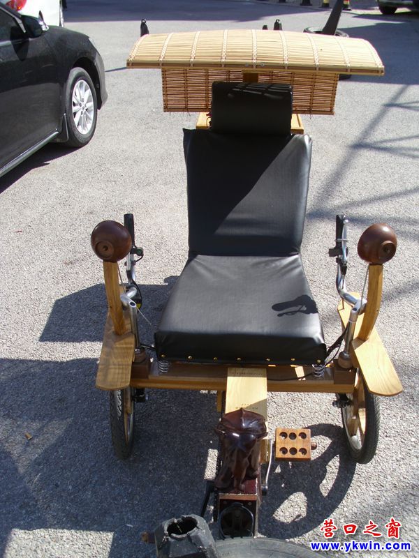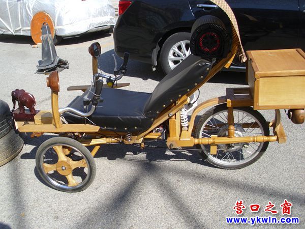 10月14日,剛一走進(jìn)營(yíng)口市渤海明珠小區(qū)西大門,一輛特制的奇葩三輪車就展現(xiàn)在眼前。只見它的骨架是木質(zhì)的、座位是把躺椅……