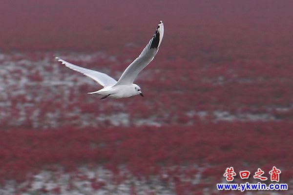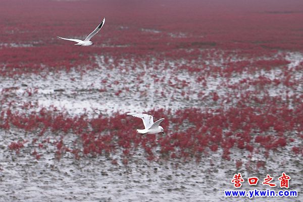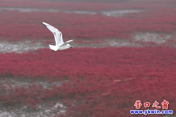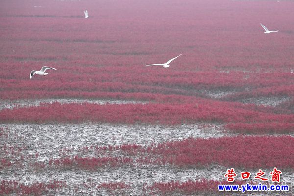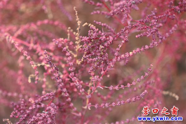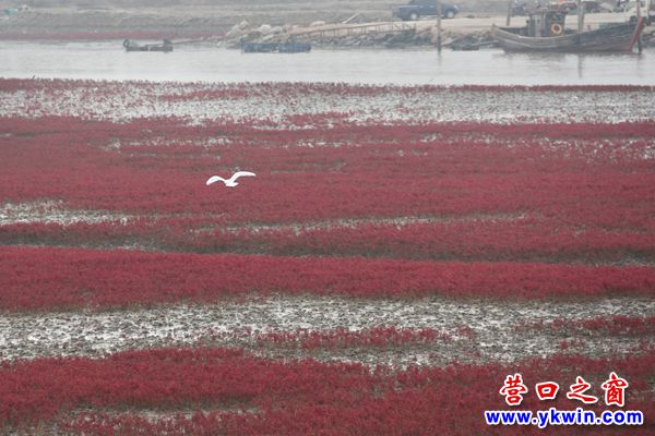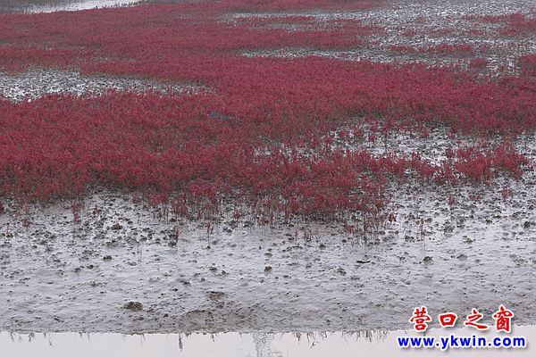 深秋的營(yíng)口四道溝,紅火一片。經(jīng)過鹽的滲透和堿的浸潤(rùn)的海灘上,堿蓬草一歲一枯榮,一簇簇,一叢叢,匯聚成最壯麗的紅。