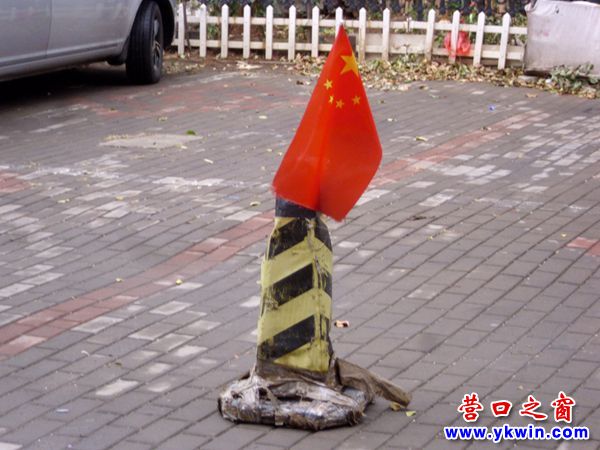 11月10日,在營口市渤海明珠小區(qū)有個(gè)道帽插著一面國旗,而這個(gè)道帽擺在一個(gè)車位里??上攵?dāng)事人的用意不外是讓鮮艷的國旗引起人們的注意,進(jìn)而幫助自己占車位。這簡直就是胡鬧!