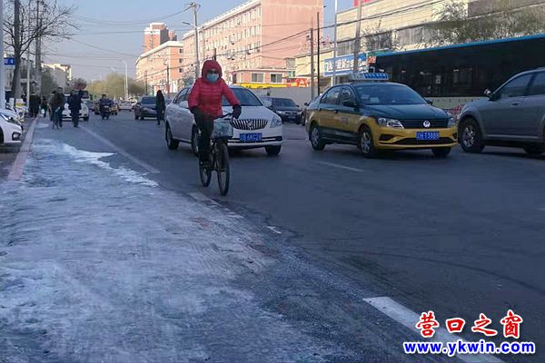 營(yíng)口市新興大街通惠門市場(chǎng)對(duì)過(guò)的慢車道已結(jié)冰數(shù)日,冰面約有50米長(zhǎng),幾乎占據(jù)了整個(gè)慢車道,行人被“逼進(jìn)”快車道,實(shí)在是很危險(xiǎn)。