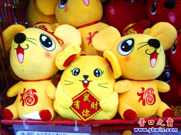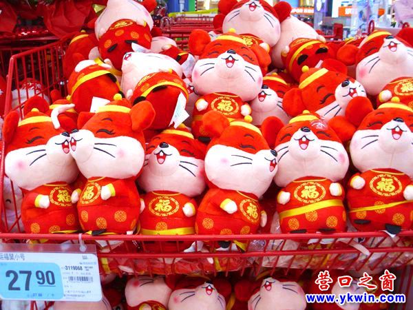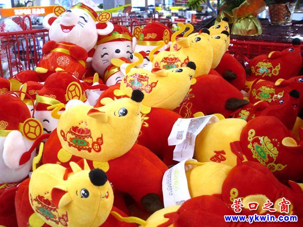 距庚子鼠年還有50多天,運(yùn)福鼠就已閃亮登場(chǎng),鼠年年味從此萌發(fā)。12月4日,來到營(yíng)口市一家大超市見到貨架上已經(jīng)擺滿了毛茸茸的紅鼠和黃鼠,它們不是抱著“福”字就是捧著“你有鼠財(cái)”。