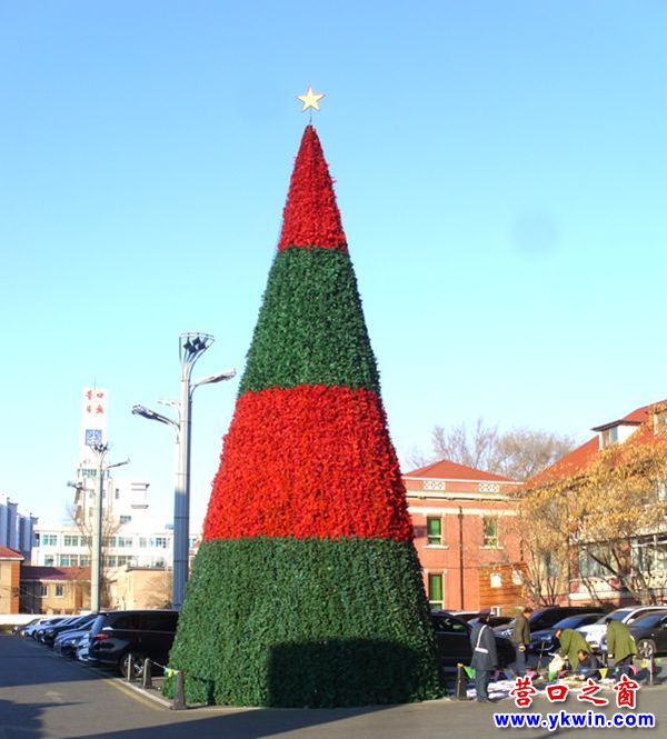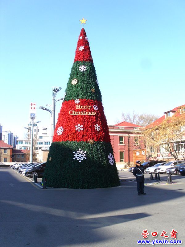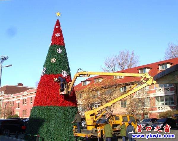 12月7日,營口市國際酒店把朵朵“雪花”和christmas(圣誕節(jié))、merry(愉快)貼在門前新“載”的特大圣誕樹上。至此,這棵建造了一個月、高達14米 、底部直徑8.5米、可能是營口最高的圣誕樹完成了“點睛”,正式迎接12月25日的圣誕節(jié)。