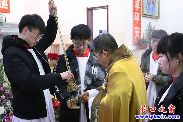 12月24日,平安夜,位于營(yíng)口市站前區(qū)八田地里16號(hào)的天主教堂里熱鬧非凡,近五百名教友來到這里,他們熱情虔誠(chéng)的漸入忘我境界,大家共同祈禱國(guó)家富強(qiáng),人民幸福,并互致問候和祝福。