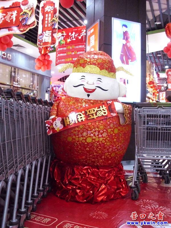 1月21日(臘月二十七),走進營口市超市、小區(qū)和街頭見到到處都是散發(fā)著年味的中國紅。在錦聯超市超市門口,一穿戴紅衣帽的財神笑容可掬地迎賓。在麗景豪庭小區(qū)門內,數十個紅燈籠懸掛在頭上。在通惠門街頭,一堆堆煙花爆竹正在出售……