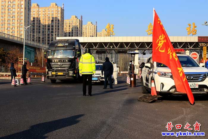 2月1日,在營(yíng)口熊岳高速公路收費(fèi)站口,看到公安交警衛(wèi)生防疫公路交通聯(lián)合防控。記錄他們,為他們點(diǎn)贊。