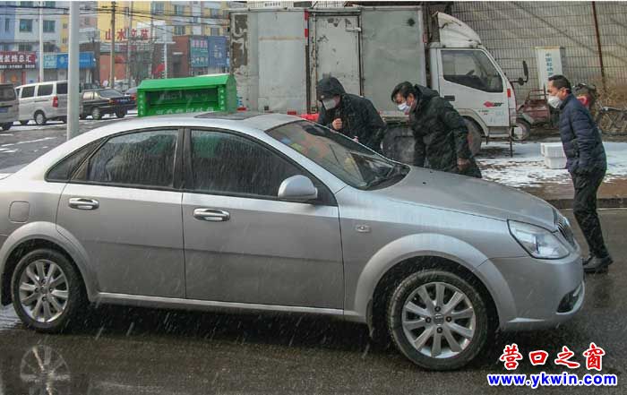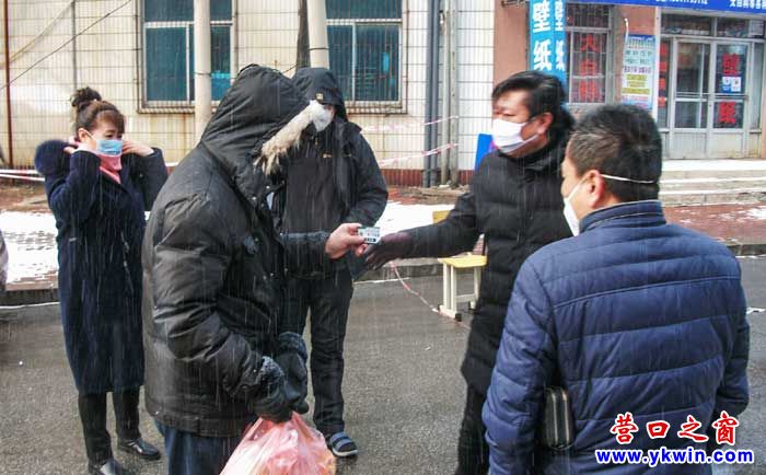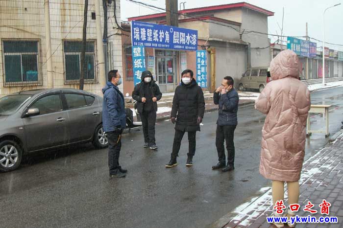 2月7日,營口市老邊新聞傳媒中心配合老邊福安社區(qū),協(xié)助包片排查疫情。新聞人迎風(fēng)冒雪設(shè)卡排查登記。